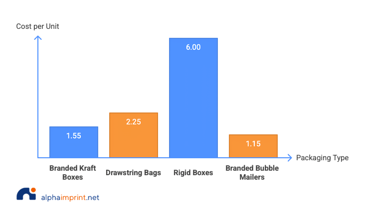 - Branded Kraft Boxes: $1.10–$2.00 per unit