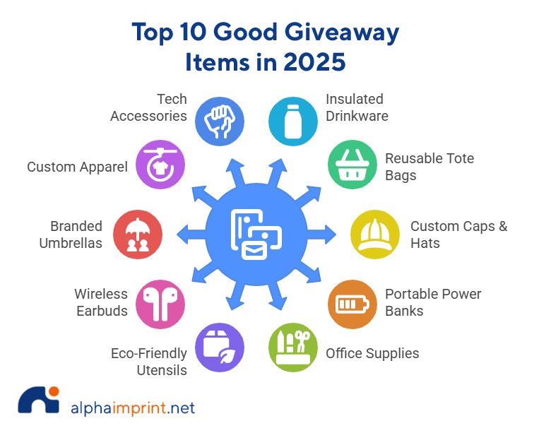 A giveaway is simply a branded product handed out for free to raise awareness. The magic lies in pairing the right item with the right crowd.Â